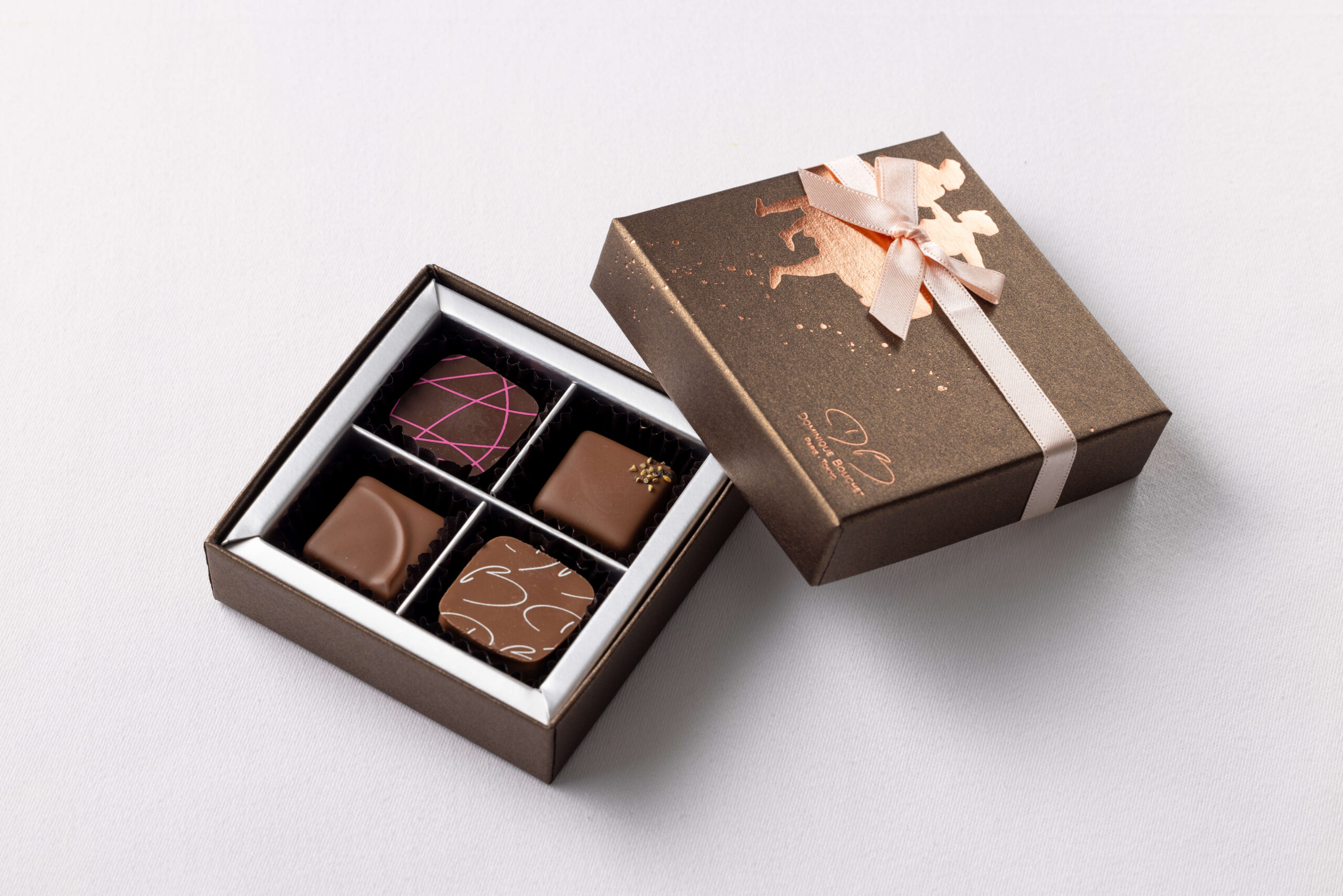 ポワブル、パンデピス、フレーズ、キャラメル・サレの4種類。 甘酸っぱいフルーツの魅惑的な味わい。 なめらかなミルクチョコレートと、コクのあるキャラメル、風味豊かなスパイスのハーモニー。 どこか懐かしくも新しい風味をお楽しみください。